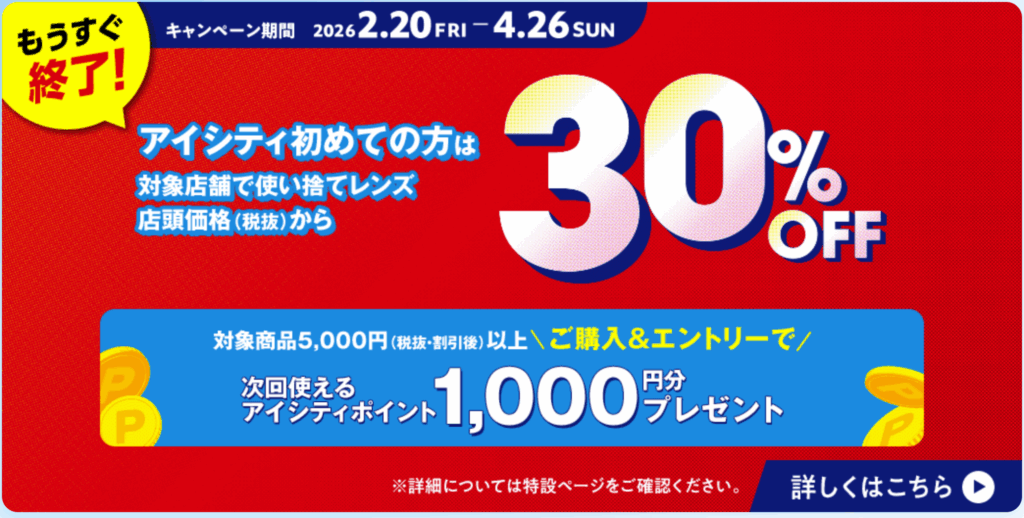 楽天市場では、コンタクトレンズの初回購入者を対象としたポイント還元型のクーポンを提供しています。有効期限は2026年1月30日までで、購入履歴の確認が必要となります。楽天市場での購入は、楽天ポイントとの併用が可能なため、効果的に使えば大きな節約につながります。