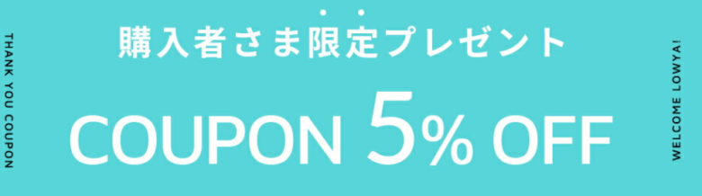 LOWYA(ロウヤ)では、買い物金額につき何パーセントか割引されるクーポンがあります。