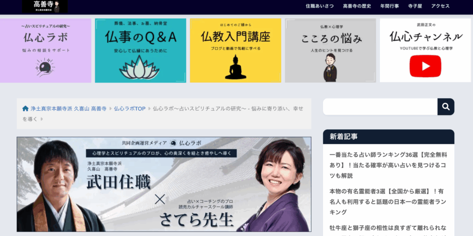 武田住職と占いの先生さてらがコラボする、悩みに寄り添う占いスピリチュアル研究サイト。